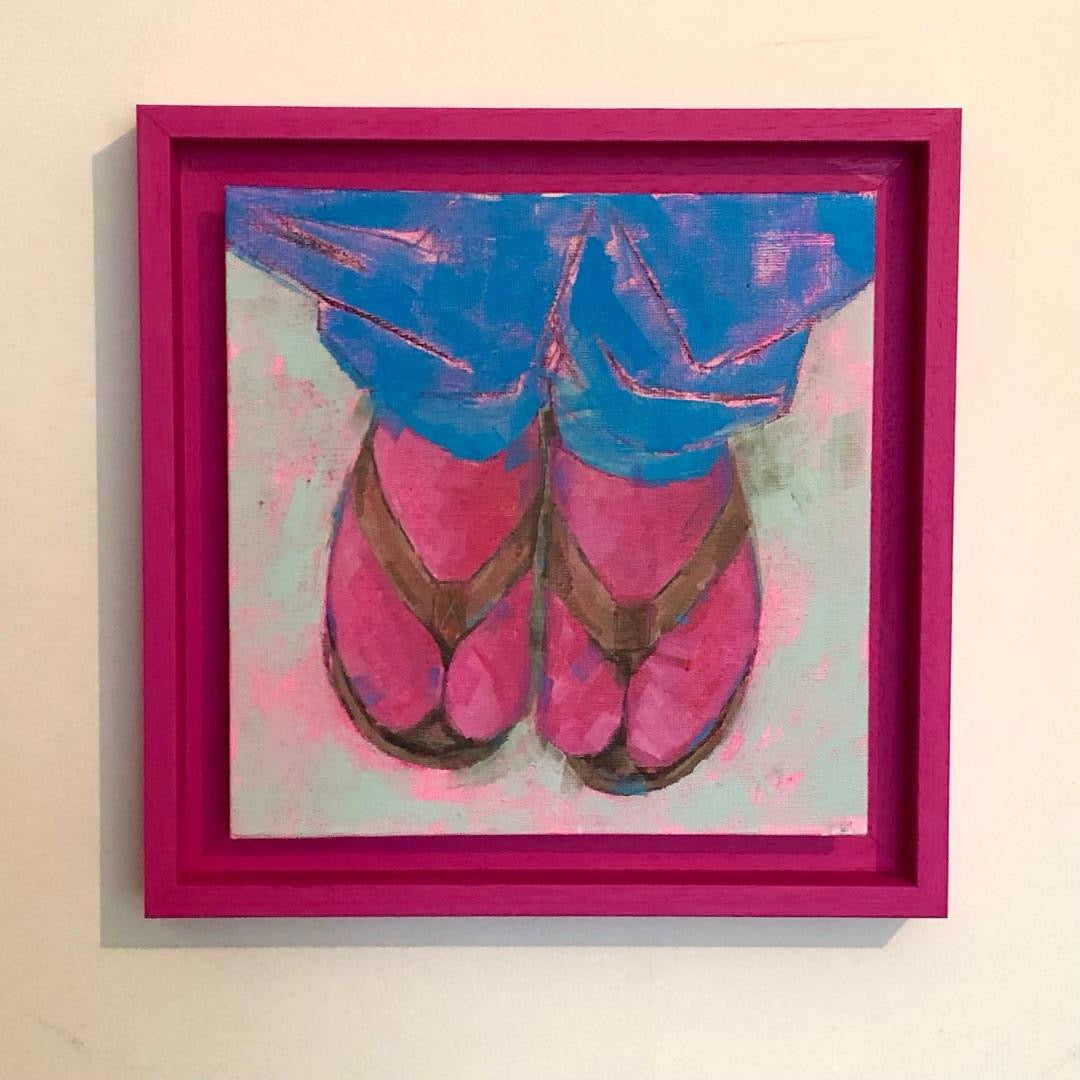 "Socks and Sandals" Framed Original Acrylic Painting on Canvas by Flo Lee