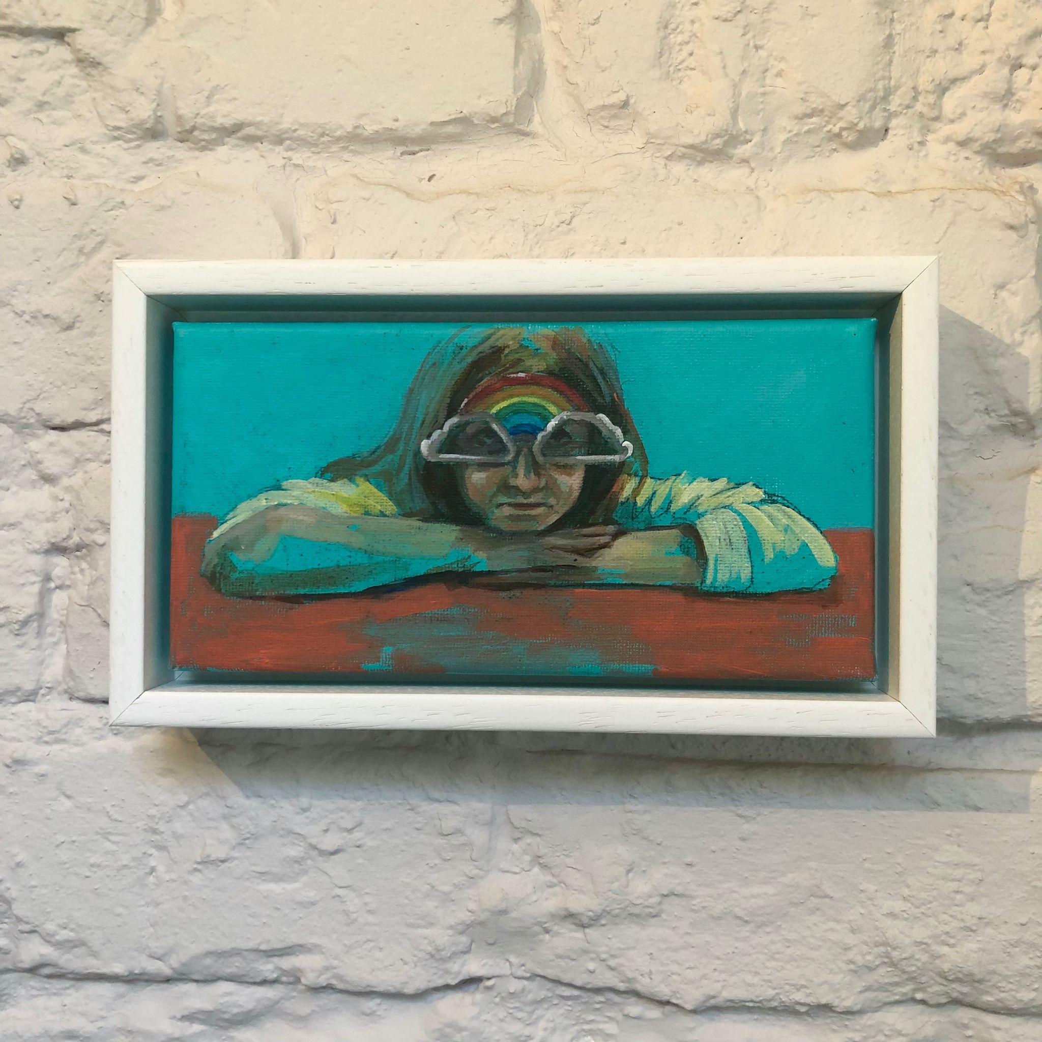 "Rainbow shades” Framed Mini Contemporary Original Painting by Flo Lee